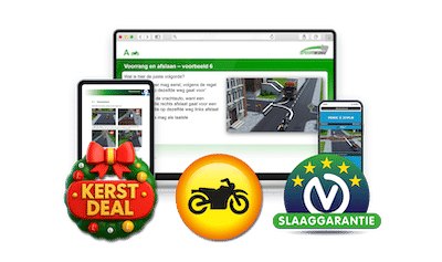 Bestel je één van onze online programma’s? Dan krijg je na betaling meteen toegang tot korte maar volledige hoofdstukken die steeds een deelonderwerp aanpakken. Je hebt maar 10 tot 15 minuten nodig om dat stukje motor theorie te oefenen. Wanneer je alle theorie doorlopen hebt, kun je de motor theorie verder oefenen met vragen en oefenexamens. Wil je eerst je kennis testen? We hebben een gratis theorie examen voor de motor.